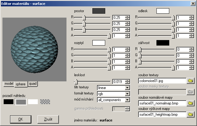 Zlepšený editor materiálů