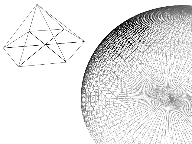 povrchu koule nebo na ploché čtvercové ploše. Všechny tyto modely