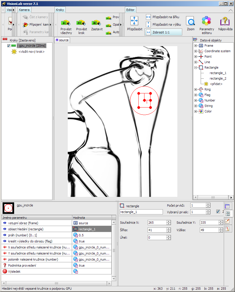 fragmentového shaderu. Nový krok systému strojového vidění VisionLab