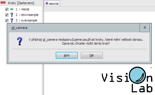 Pravděpodobně jste během vývoje aplikace strojového vidění již zaznamenali, že při vložení některého z kroků, které mění velikost obrazu, se vám zobrazilo varování, že pro virtuální přístroj gl_camera není tento krok doporučen. Je to vskutku divné varování, které zaslouží bližší vysvětlení.