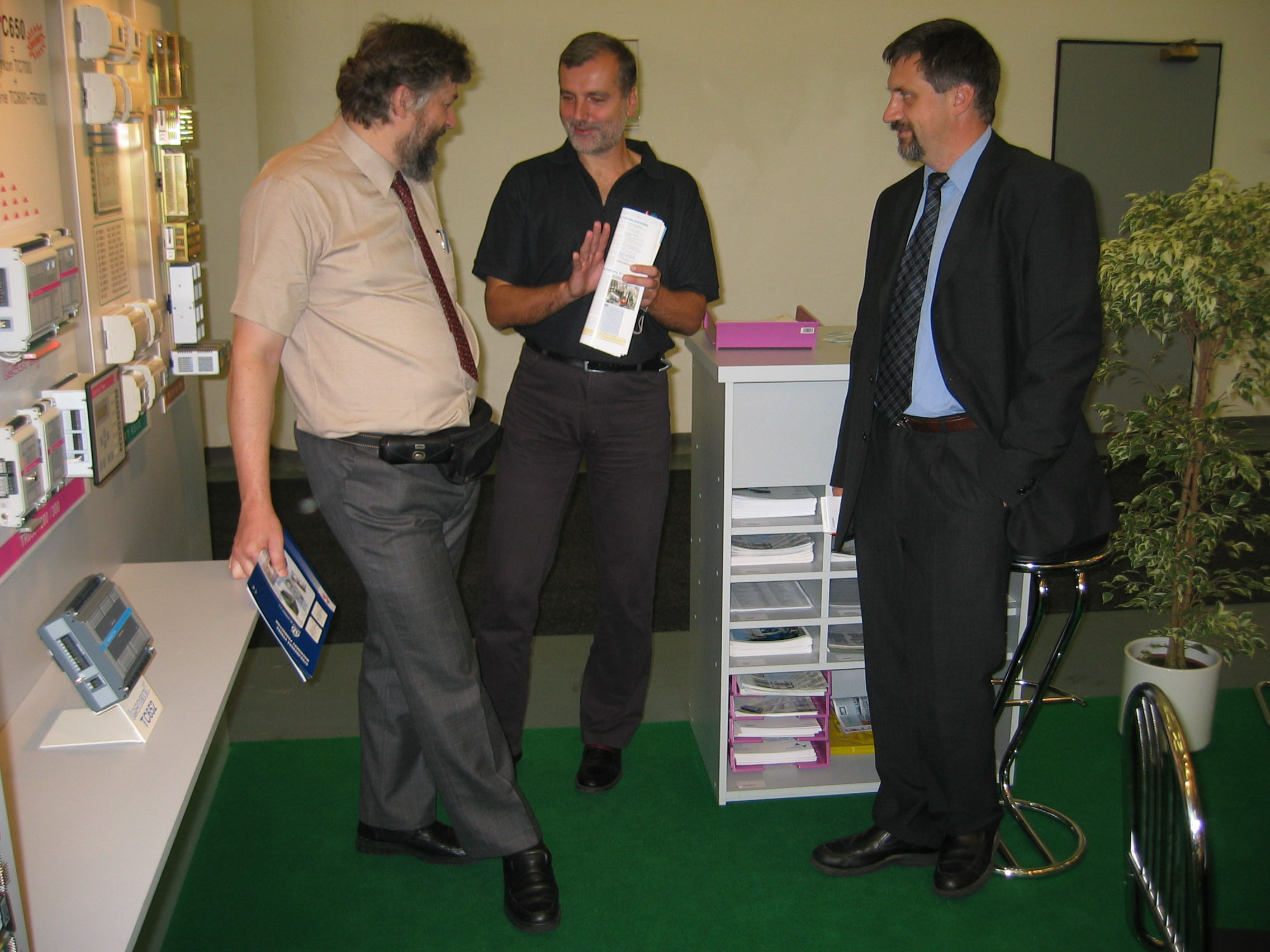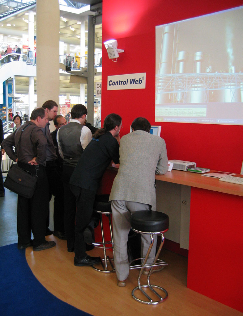 předvádět zájemcům systém, který ani při výstavním celodenním