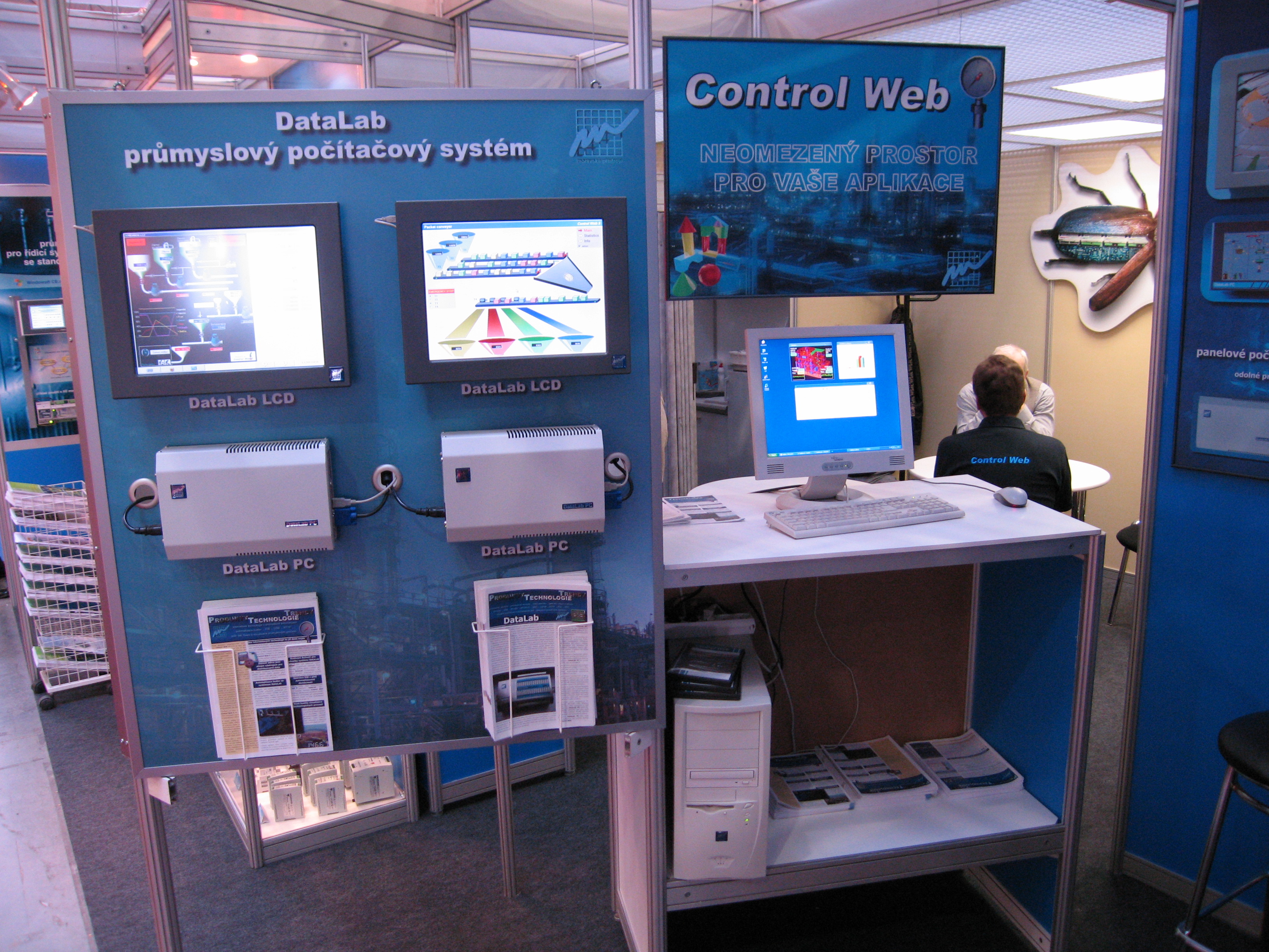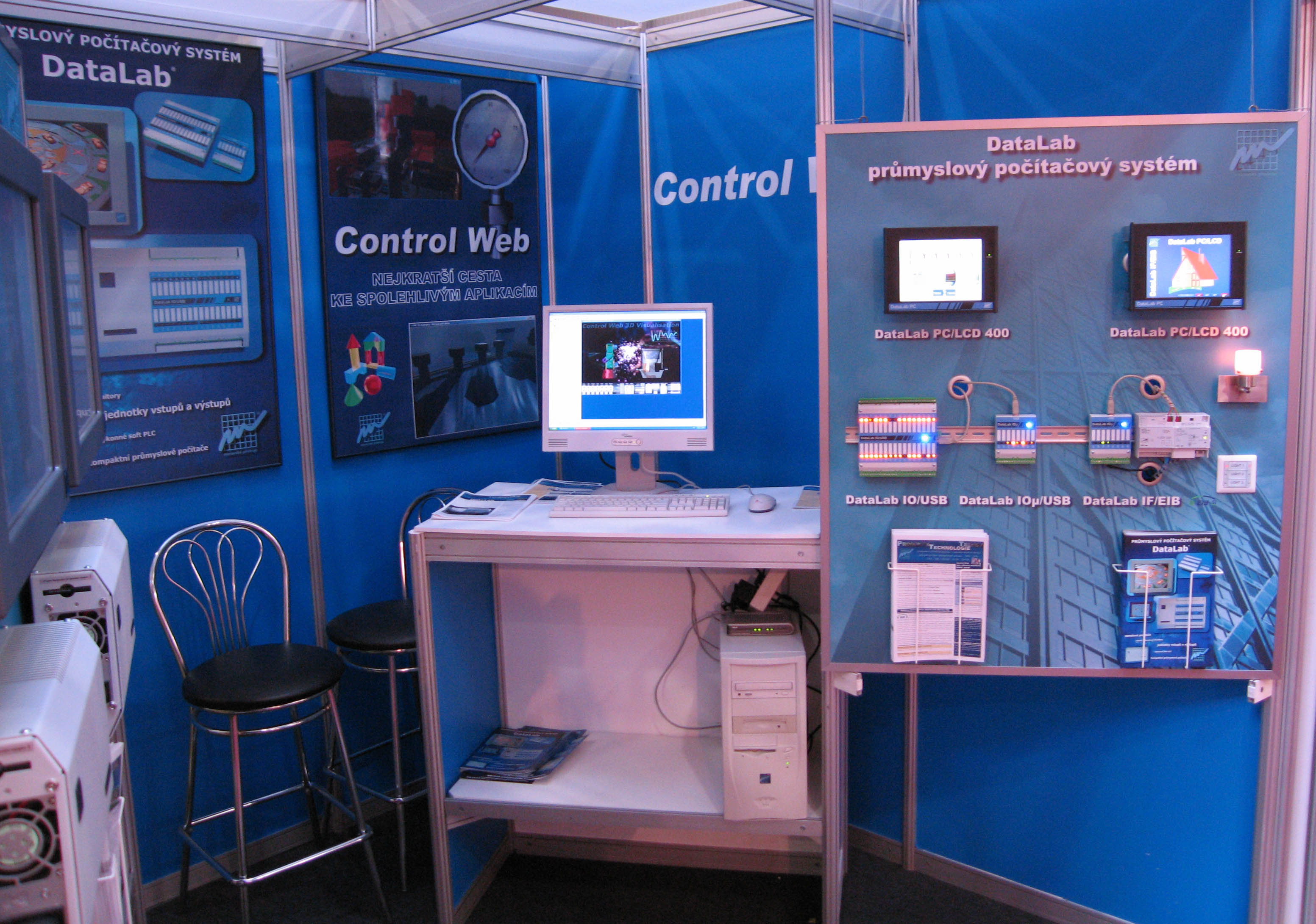 náš stánek s několika počítači na metr čtvereční
