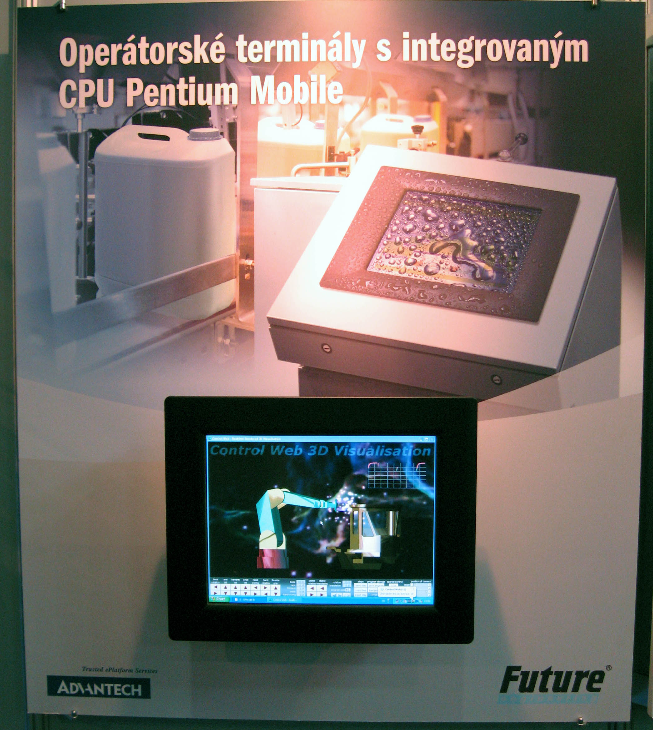 efektní grafika v prostředí Control Web na průmyslovém počítači ve stánku firmy Future Engineering