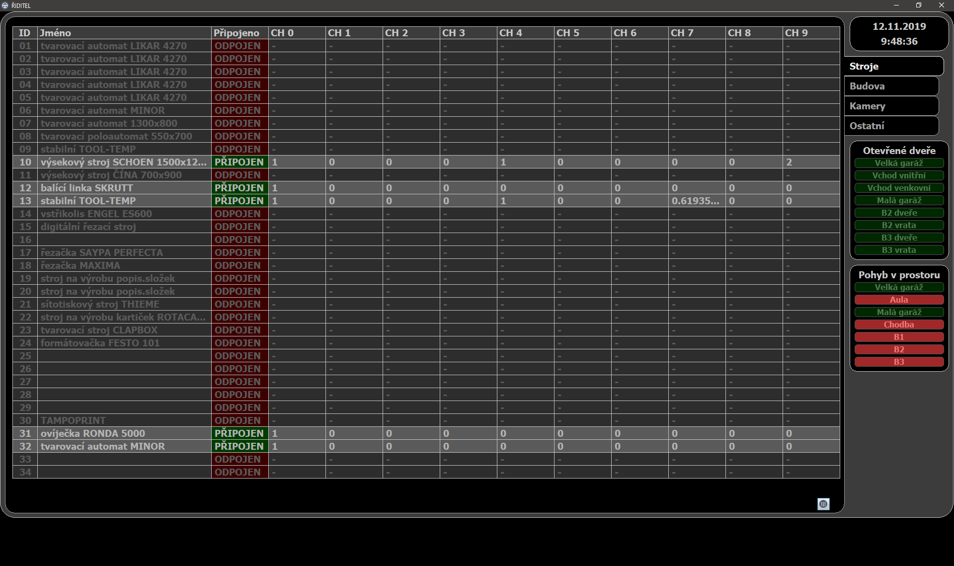 monitorovacího a řídicího systému připojeny i stroje staršího data