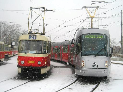 The Škoda 14T car No. 9111 appeared in the streets for the first time on January 28th, 2006. Next 20 tramcars should be bought till the end of year 2007 and next 40 pieces within the following three years.