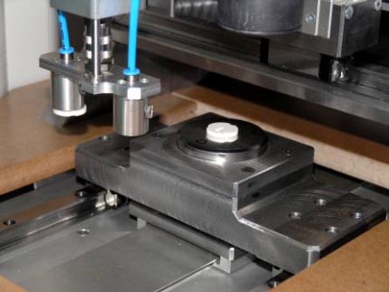 Uchycení výrobků je řešeno pneumaticky na principu tlaku nebo