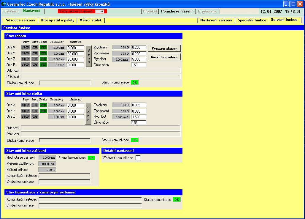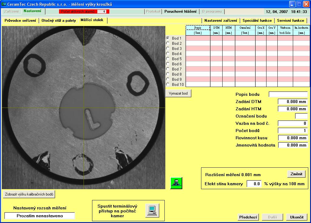 bezkontaktním měřením vzdálenosti a obrazovou kontrolu kamerovým