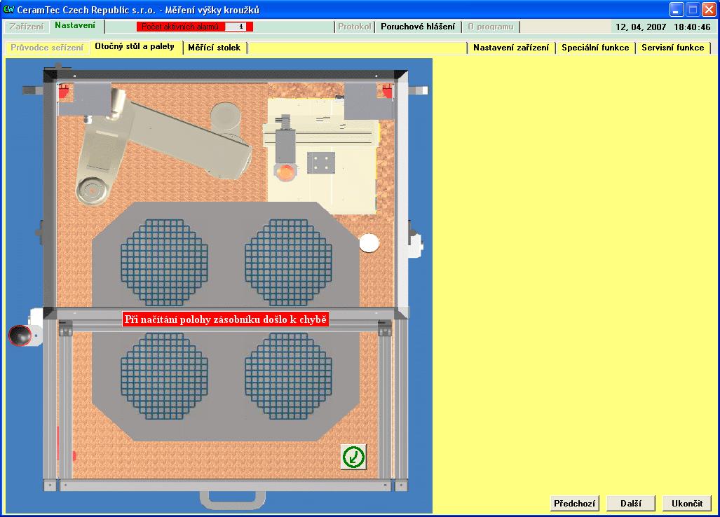 vyprázdnění zásobníků s vadnými výrobky. Manipulaci ze vstupního a