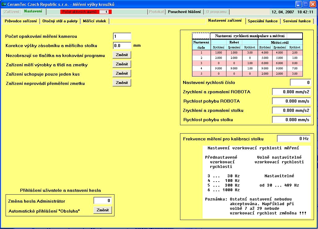 Zařízení je navrženo jako plně automatický stroj s občasnou