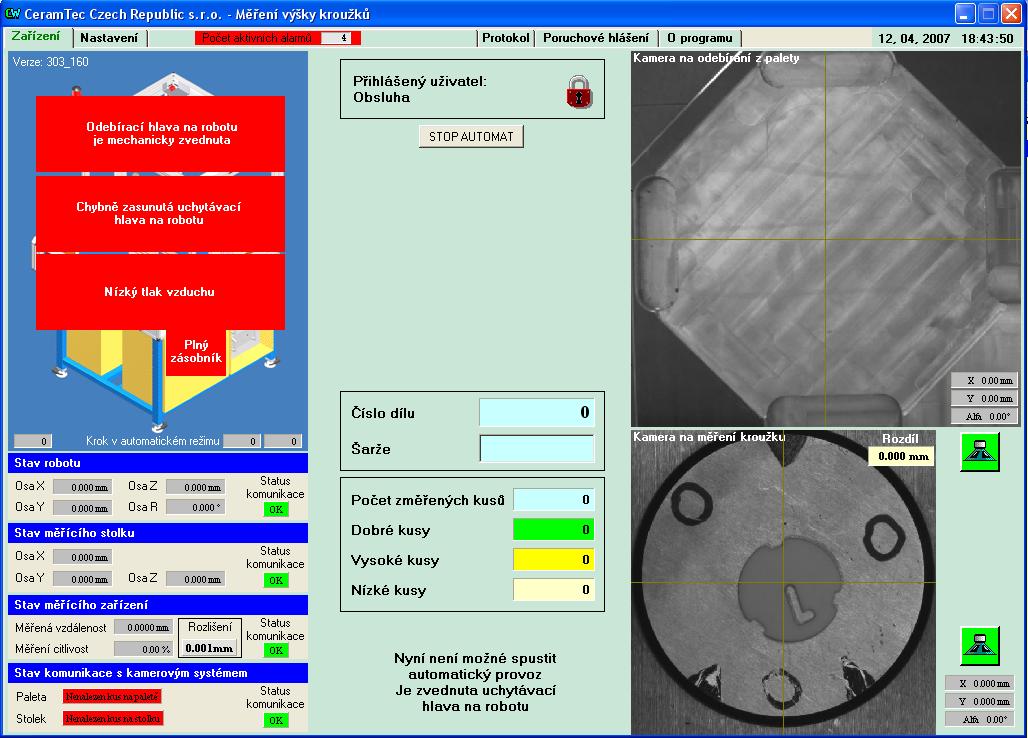 některý z parametrů neodpovídá, je kus automaticky vyřazen a přesunut