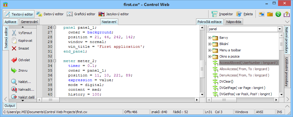 Uživatelské rozhraní systému Control Web v7