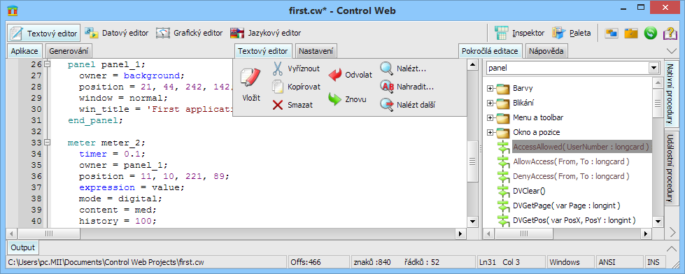 Věříme že nové rozhraní systému Control Web 7 je efektivnější, flexibilnější, komfortnější a dovoluje podstatně lépe využít všechny nabízené funkce systému. A první reakce uživatelů, byť patřících k zatvrzelým odpůrcům klasických ribbon rozhraní, ukazují že se to snad povedlo.