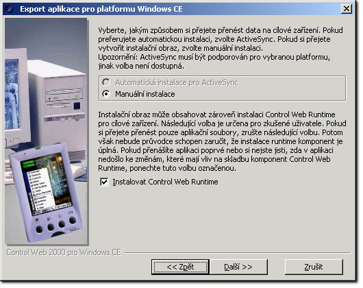 Jak už bylo řečeno, Control Web Runtime pro Windows CE
