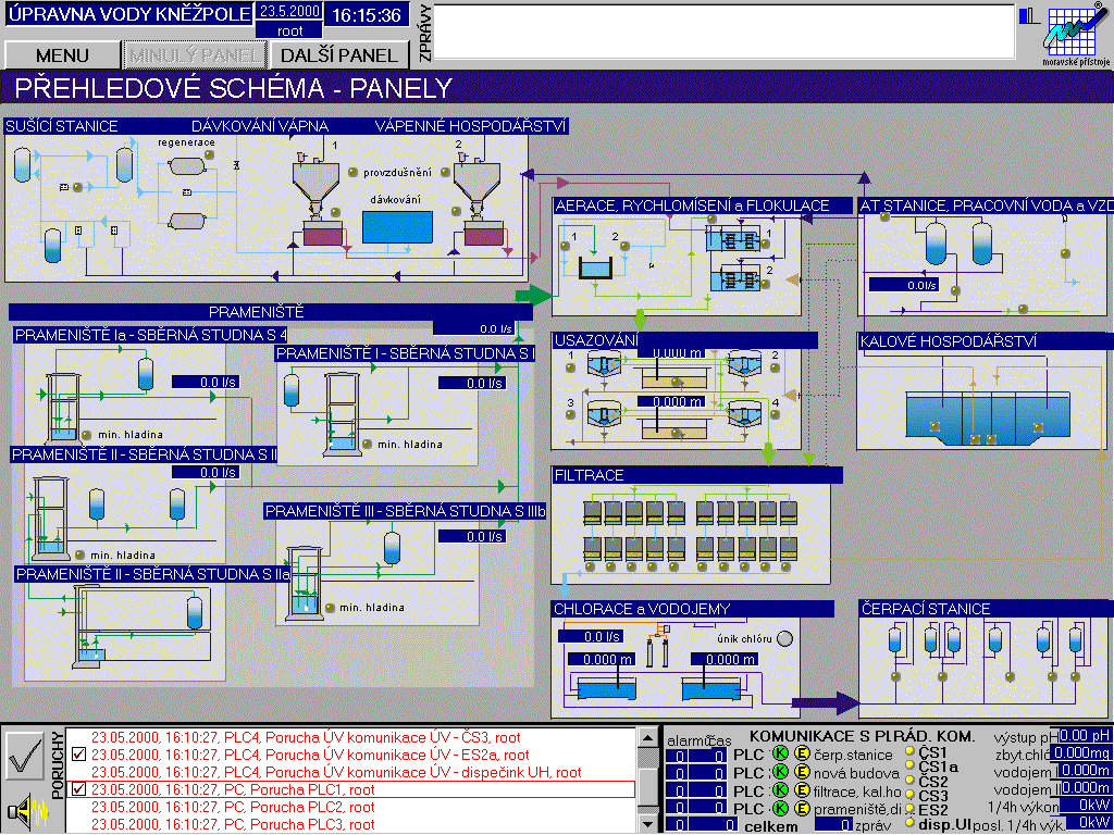 hlášení a okolo 100 stavových zpráv. Obsluha je nucena se v