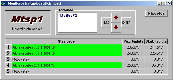 terminálem TERM01, kterým obsluha pecí vkládá požadavek na
