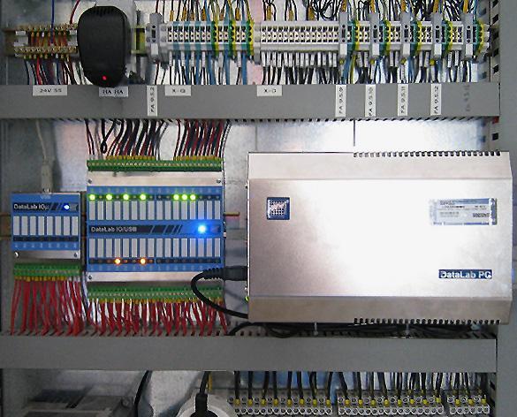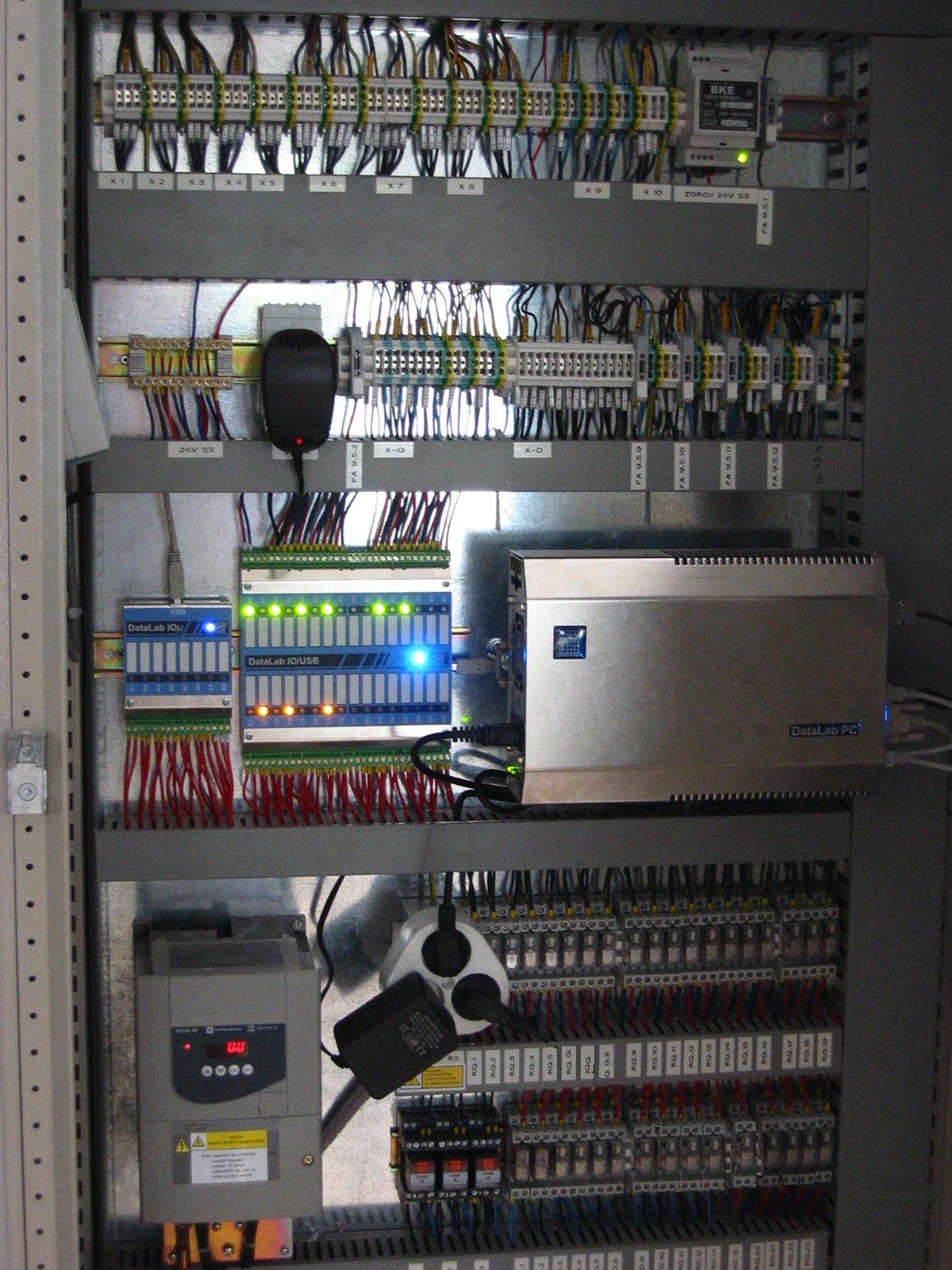 Veškeré činnosti řídí aplikace v prostředí ControlWeb5 běžící na průmyslovém počítači DataLab PC600. Vstupně výstupní jednotky DataLab IO a IOm jsou výkonnými porty řídicího systému. Pro vizualizaci a obsluhu systému slouží dotyková obrazovka průmyslového LCD monitoru DataLab LCD-15T. Řídicí systém je zálohován UPS a je zabudován společně s výkonovými prvky do rozvaděčové skříně.