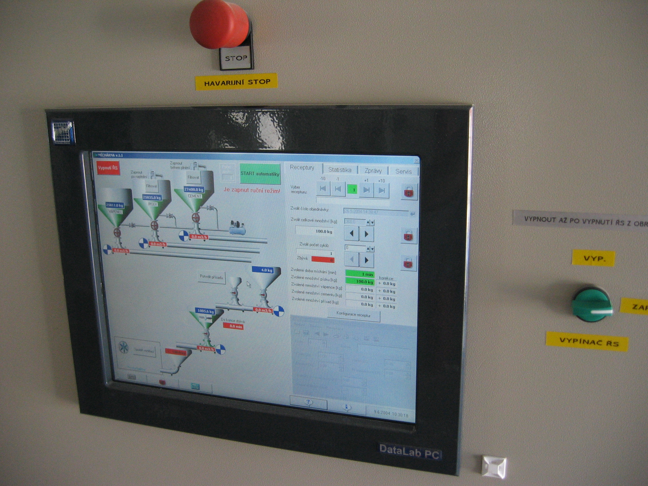 Řídicí systém pro míchárnu suchých cementových směsí pro firmu Ekolak. Dodavatel technologie - firma ZK ING.
