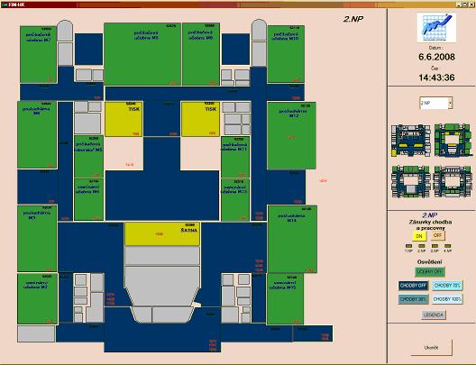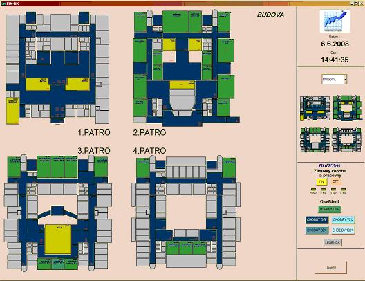 Řízení osvětlení přes sběrnici EIB (KNX)v budově FIM Univerzity Hradec Králové.  | | Řídicí systém osvětlení přes dispečerské pracoviště.