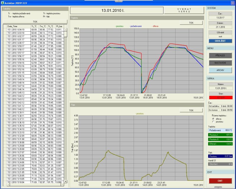 Řídicí systém pro autokláv velkých rozměrů. Jedna várka až