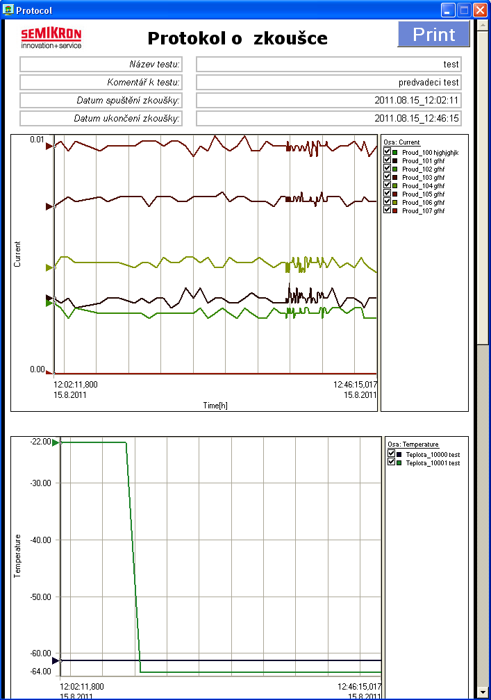 veličiny jsou zobrazovány graficky i numericky a průběh