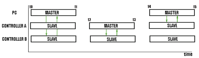 z možných časových rozvržení komunikací více master stanic :
