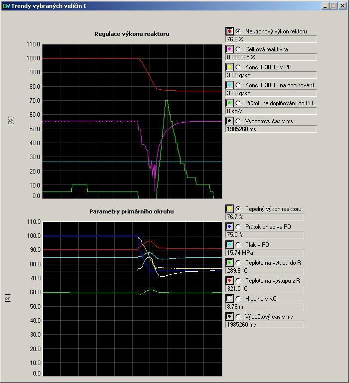 simulátor uveden do nominálního stavu bloku, tzn. na 100% výkonu