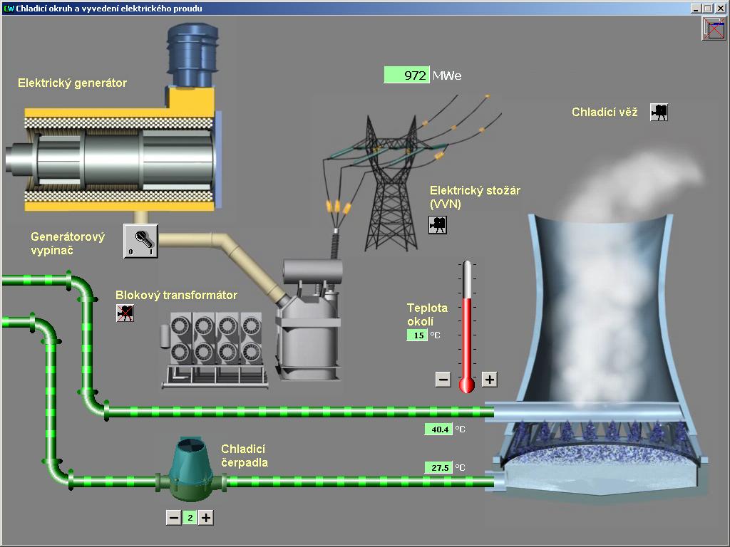 elektrárny. Parametry simulátoru jsou nastaveny tak, aby zhruba