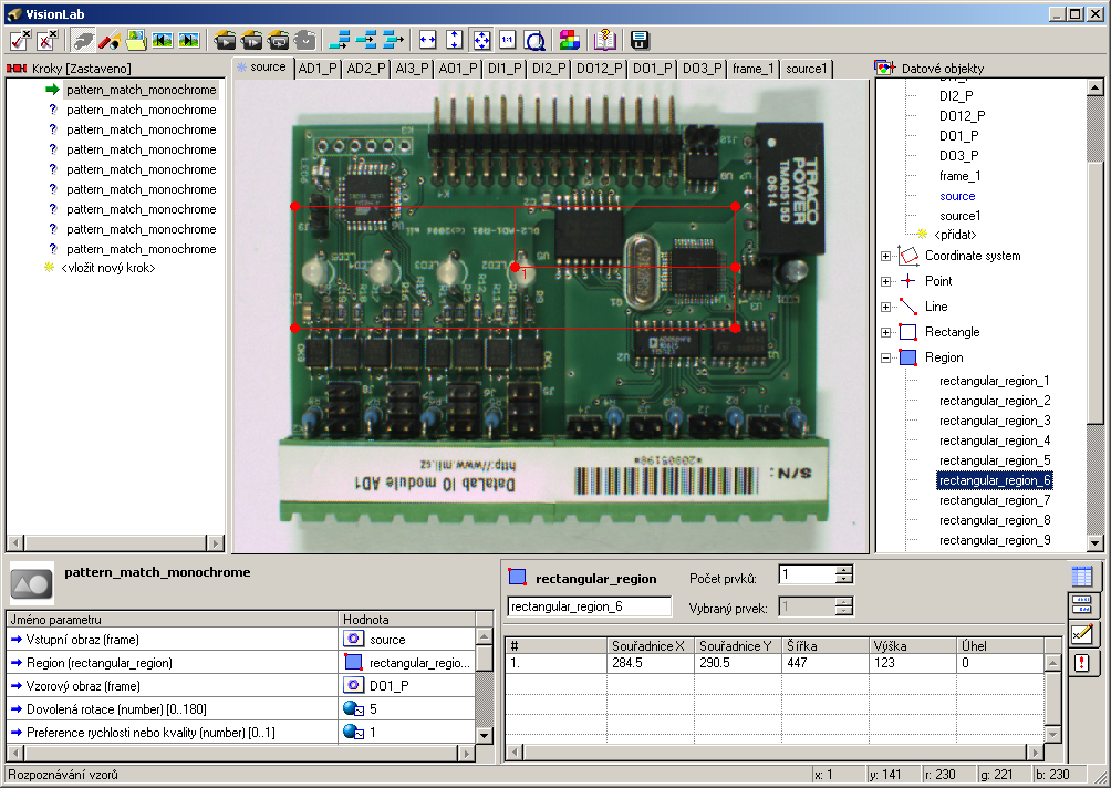 aplikace strojového vidění v prostředí VisionLab mohou všech těchto vlastností využívat. Vývojový