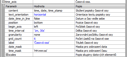 • time_mask — maska pro zobrazení času na časové ose. Pokud parametr není definován, je datum zobrazen ve formátu daném nastavením systému MS Windows.