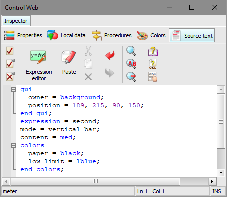 Such easy editing of the application is possible in the Graphics Editor that is the main space for creation in the Control Web. Nevertheless, because the application in the Control Web is stored in the text form, you will also meet the text editor. Both editors, graphics and text, cover a deeper duality of approaches to the creation of an application in the Control Web; at present it is sufficient to know that such a text editor exists.