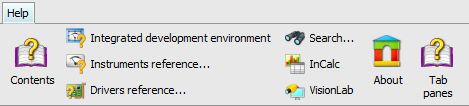 The other two ways of opening the documentation are offered by Instrument Inspector and the development environment itself. Documentation opened by the inspector always concerns a currently modified instrument, and for easy orientation it is opened only in the form of the text of documentation (without other control elements). Of course, if you start to modify another instrument and you open from the inspector its documentation, a new window is not opened, only the content of the already displayed window is replaced. For the opening of the documentation of instruments from the inspector, buttons in the tool bar are used, one for jumping to the description of parameters and the other for jumping to the description of instrument procedures. The shared window with instrument references remembers its position and size, so in the case of repeated use it is opened in the position you left it.