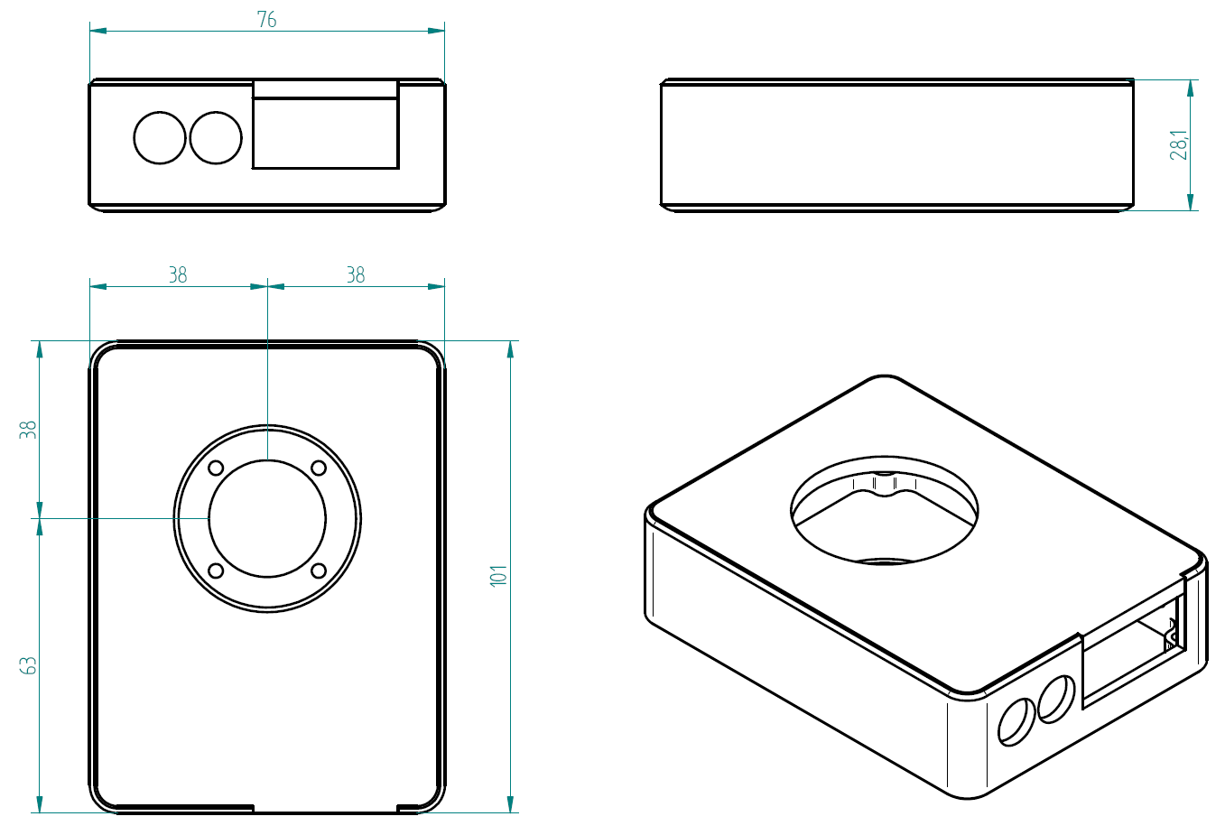 Pevné tělo z obráběného hliníku.