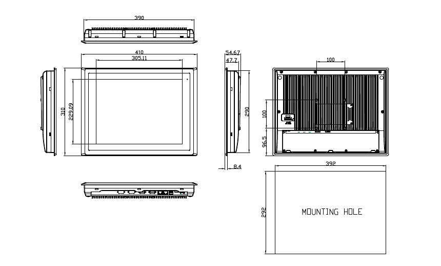 Rozměry počítače a montážního otvoru